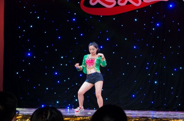 在比赛最后的斗舞环节,经管1401班的罗晗薇同学,代表文澜学院第二位出场。现场给出了选手事先不知道的配乐,在简短的准备时间内,选手需要想出舞蹈动作进行表演。罗晗薇在节奏感较强的现代风格配乐中,随机应变,展示出了自己的气势与能力,出色地完成了比赛,赢得了现场观众的喝彩。