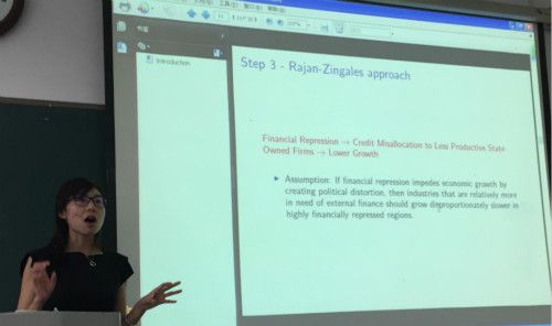 主讲人严硕围绕政府对金融市场的干预与经济发展之间的关系这个话题展开。通过使用中国企业和地区层面的数据,文章发现在金融干预较强的地区,对外部融资依赖更强的行业发展速度明显较慢,而金融发展与外部融资需求对产业发展的影响之间的正相关关系也会随着金融干预的增强而减弱。由此,文章的一个主要假设得以验证,即金融干预会使得银行贷款具有政治倾向,导致银行更倾向于贷款给低生产率的国有企业,从而降低整体经济增长率。