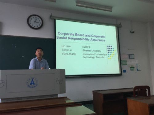 | (通讯员 令狐梅)10月23日,文澜学院第七期学术讲座在文波204举行,来自西南财经大学经济与管理研究院的廖林教授莅临文澜学院,作了题为“Corporate Board and Corporate Social Responsibility Assurance: Evidence from China”的讲座。讲座由文澜学院帅杰老师主持,文澜学院和金融学院部分老师以及文澜学院的学生参与了此次讲座。 主讲人廖林围绕公司董事会和企业社会责任保证之间的关联这个话题展开,通过对2008年到2012年中国上市公司企业社会责任报告的2054个公司年的数据研究,发现一个拥有大规模董事会的公司里,如果有更多的女性董事,首席执行官与董事长职位分离,那么该公司则更容易参与企业社会责任认证。董事会规模和性别差异也影响企业对社会责任认证提供方的选择。然而,董事会的独立性和首席执行官背景并不影响企业社会责任认证的决定。与我们的预测不同的是,外籍董事的公司不太可能参与自愿性企业社会责任认证,尽管这些外籍董事们会做出更多企业社会责任的表现。 讲座结束后,廖林教授对同学们提的问题作了详细、耐心的解答,他独到的观点和精彩的讲授赢得了在场师生的阵阵掌声。 |