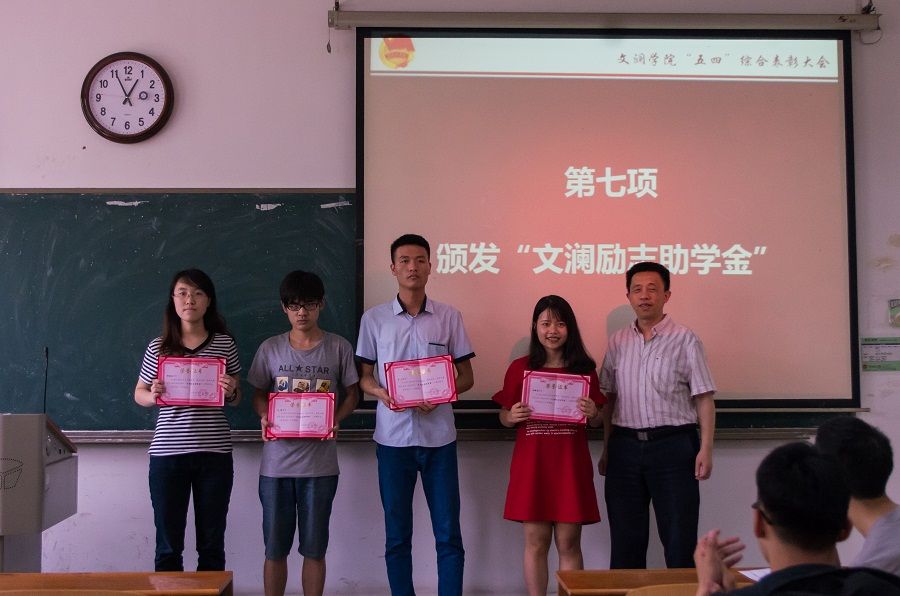 (文澜学院团委记者 刘楠頔 罗心怡)2016年6月8日中午,文澜学院于文波楼举行了第一届五四表彰大会暨“文澜励志助学金”颁奖典礼。对在2015-2016学年中表现突出的先进个人和集体进行了隆重的颁奖。