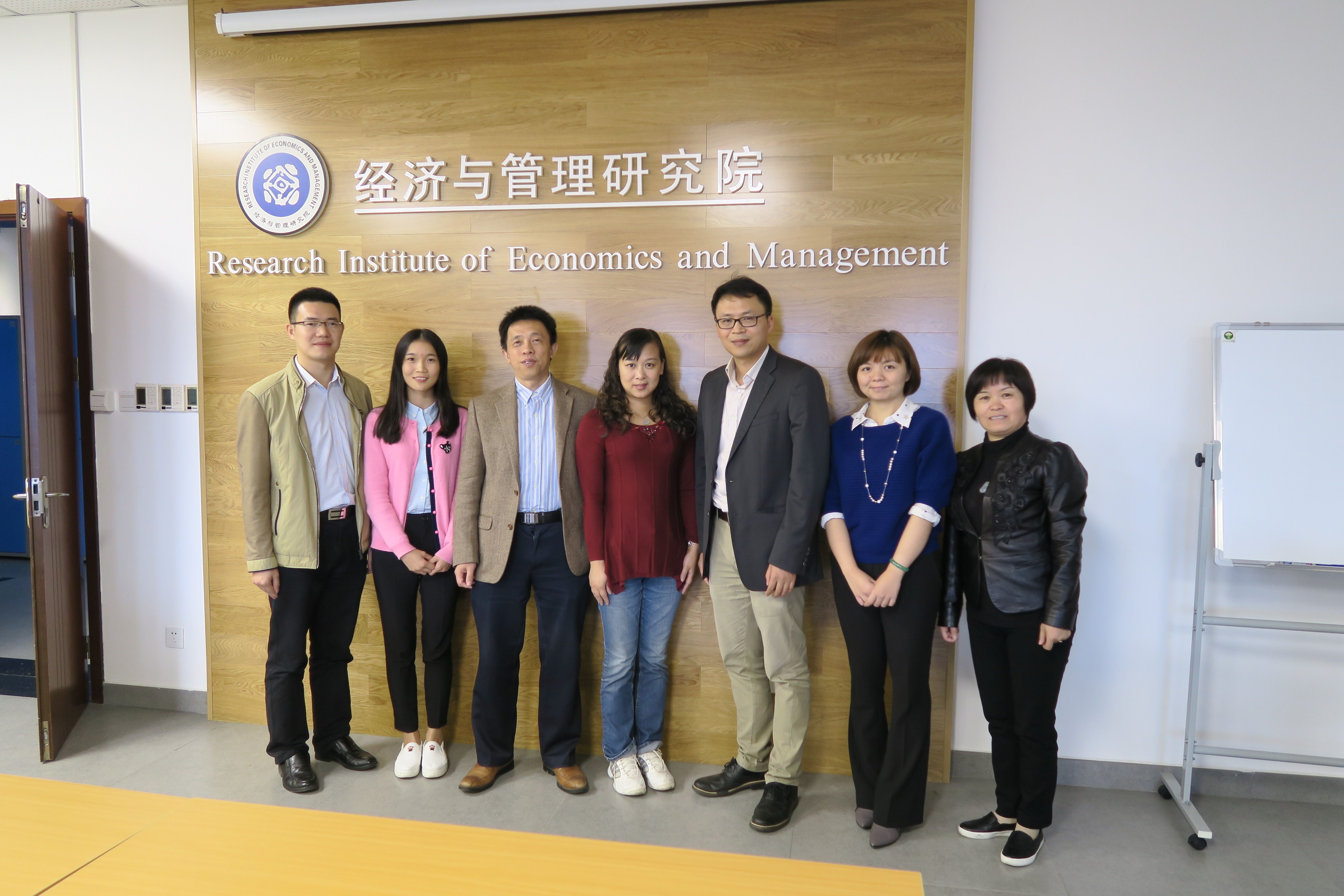 我院龚强院长一行四人抵达西南财经大学经济管理研究院后,该院副书记周高蓉、常务副院长李涵、副院长兼副书记董艳对我院领导和教师的来访表示了热烈欢迎,双方就教学、科研、师资队伍建设等核心问题进行了座谈交流。