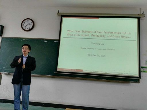 2016年10月21日,中央财经大学中国金融发展研究院贾越珵老师,于文波207教室开展了题为“What Does Skewness of Firm Fundamentals Tell Us About Firm Growth, Protability, and Stock Returns”的学术讲座。文澜学院吴雷教授、杨荷老师、谭颖老师及部分师生参加了本次讲座。