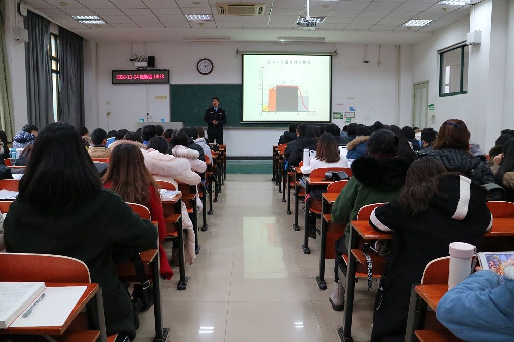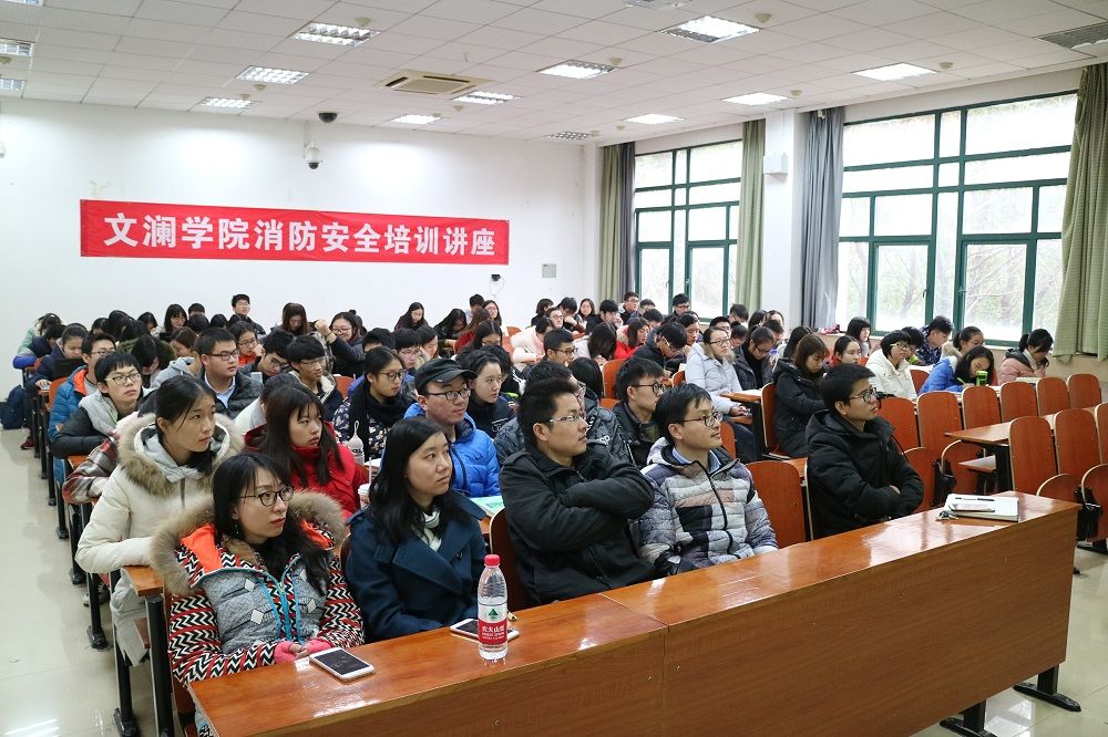 2016年11月24日下午2点30分,文澜学院消防安全知识讲座在文波楼210教室举行。湖北省消防协会科普宣教中心林帅教员受邀向文澜学院14级、15级、16级全体同学宣讲消防安全知识。文澜学院团总书记余利老师和部分教师代表参加了此次讲座。