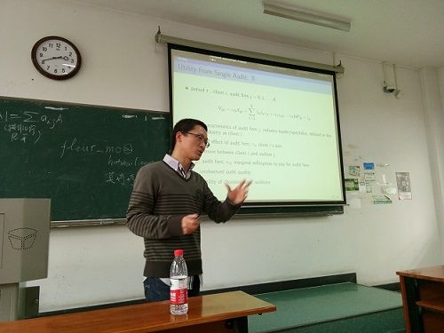 在本次讲座中,朱老师给同学们介绍了如何使用结构模型检验联合审计需求对审计市场结构和社会福利的影响。他指出:实证分析显示,联合审计会使中小规模的审计公司会得到一些市场份额但是会牺牲其中三所较小规模的“四大”会计师事务所的利益,并且导致大量的社会福利损失。朱老师的研究采用英、法两国的历史数据,实证检验了上述观点。