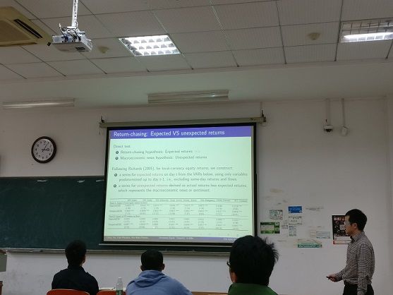 2017年4月21日下午14时25分,在文波207教室,我院很荣幸地邀请到英国杜伦大学的颜诚老师给我们做了一场题为“Uncovered Equity ‘Disparity’ in Emerging Markets”精彩的讲座。文澜学院莫婷婷、赵艳云等老师以及全体学生出席了本次讲座。