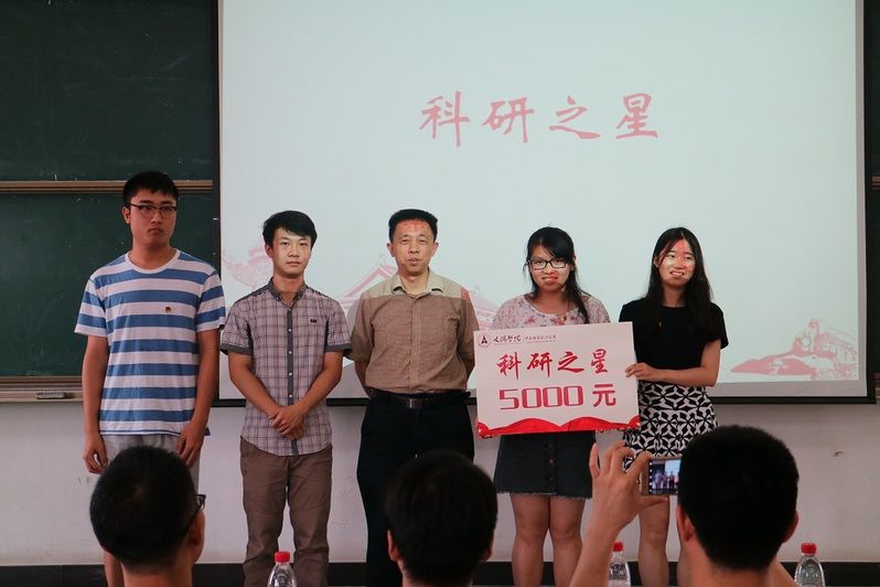 接下来,考上北京大学研究生的13级杨海盟同学作为优秀毕业生代表,向在座的师弟师妹们分享自己的考研经历与对学院及老师们的感恩之情,赢得场下阵阵掌声。