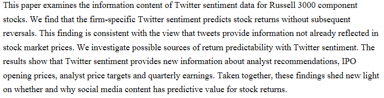 主题 / Topic:Informational Role of Social Media: Evidence from Twitter Sentiment
