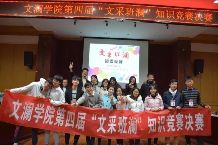 23日晚,文采斑斓决赛如期举行,经过初赛的积累比拼,最终从22支代表队中脱颖而出的分别是对对队(4队),丢丢队(2队),涛秀澜傲队(1队),辰子他哥很可爱队(3队)。比赛在一段开场视频中展开,残酷的淘汰赛制激发起了队员们的意志,在第二轮猜词环节中,3队表现不俗,频频抢得先机,4队一度陷入沉默,关键时刻,4队队长站了出来,在3队还在思索的时候便报出答案,台下观众顿时掌声雷动。虽然最终4队止步四强,但他们拼搏的精神仍是为观众留下了深刻的印象,一轮轮精彩的答题更是把现场气氛推向高潮。半场过后,剩余的两支队伍将再次进行残酷的厮杀决出一等奖的归属。两轮过后,2队以10分之差进入最后的压分时刻。根据赛制,在这一环节,选手可以从20、30、40分中自由选择答题分数,答对加分,相应的,答错也会扣除所选题的分数。在回答40分题时,2队全体队员笔走如飞,赛场的紧迫感压抑着每一个人,呼吸仿佛也变得紧促了不少,最终虽然他们给出的答案与标准答案仅有微小的差别,但他们仍是赢得了观众热情的掌声。最终,当2队再一次计算失误后,他们与胜利失之交臂。一等奖kindle由辰子他哥队摘入囊中。值得一提的是,本次比赛进入四强的队伍中,有两支都有文澜学院大一学生的身影,在面对比他们参赛经验更加丰富的前辈时,他们所表现的临危不乱以及冷静的头脑都是本次比赛的一大亮点。