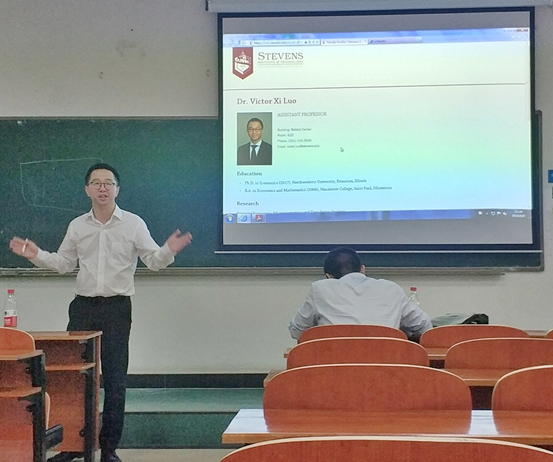 2018年6月8日下午,美国史蒂文斯理工学院(Stevens Institute of Technology)罗希老师应我院邀请做客文澜学术系列讲座,在文波楼208开展了主题为“The Role of Long-run Risk and Valuation Risk in Explaining Nominal Bond Yields”的学术讲座。讲座由文澜学院赵艳云老师主持,参加讲座的还有文澜学院龚强院长及众多学生。