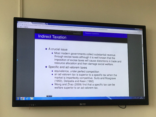 (通讯员:韩旭阳)2018年3月8日在文澴楼709文澜学院曾辰航副教授进行了以“间接税和不良竞争”为主题的学术讲座。曾老师主要研究产业经济学、微观理论、定价理论等方向。已在一些国际学术期刊发表多篇论文。
