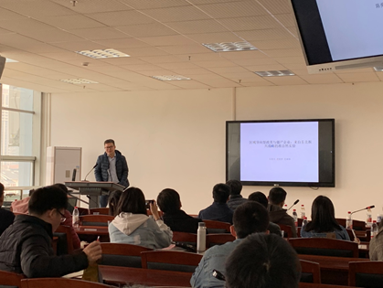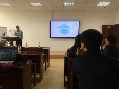 图为西南政法大学经济学院于文超副教授作“公开能带来效率吗——政府信息公开影响企业投资效率的经验研究”讲座