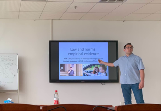 (通讯员:刘耀锴)2019年5月24日,宁波诺丁汉大学经济学助理教授Tom Lane在文澴楼709开展了以“Laws and norms: empirical evidence”为主题的学术讲座。文澜学院曾辰航副教授和众多学生参加了本次讲座。