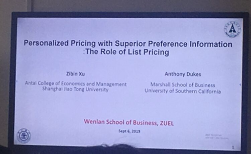 (通讯员:陈虎)2019年9月6日下午2时,米兰电竞·(中国区)文澜学院第163期系列讲座在文澴楼709教室顺利举行。本期的主讲题目是“在占优偏好信息下个体化定价以及明码标价的作用”,主讲人是来自上海交通大学安泰经济与管理学院的徐子彬教授。文澜学院荣昭、高楠、皇甫秉超、帅杰等老师,以及文澜学院部份学生出席本次讲座。