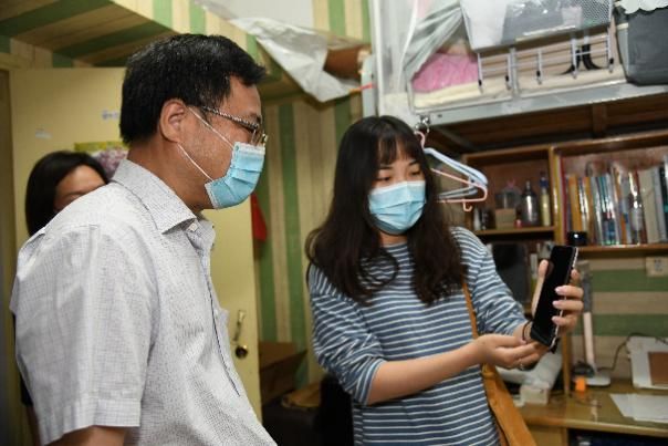 在宿舍楼内,侯振发书记与自己结对子班级经管1902班杜雨婷同学现场视频连线,问及杜雨婷同学的家乡、是否想念学校,表示学院和学校会为每一位学生用心服务:“同学们请放心,学院和学校会为你们做好各项服务工作,有什么困难尽管告诉老师”。杜雨婷同学对侯书记的关心表达了感谢:“侯书记在百忙之中抽出时间关心慰问我们,让我感受到了来自六百多公里外的学校的温暖,激励我在家好好学习,不辜负学校的期望!也相信我们能早日战胜疫情,在美丽的中南大重逢!”。视频连线展现了互相牵挂、互相祝福的浓浓中南大师生情。随后,侯书记细心为杜雨婷同学的被子贴上标签,将对学生的关心“晒”了出来。