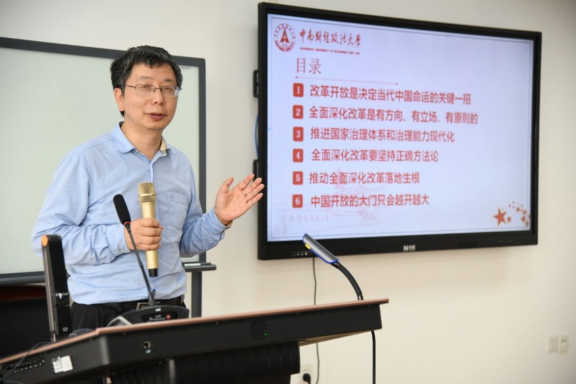 新闻网讯(通讯员 刘千惠 余利)“人类社会要坚持改革开放,才能持续焕发生机与活力。”9月28日下午,副校长邹进文走进文澜学院教室,为文澜学子带来以《将全面深化改革进行到底》的专题思政课讲座。