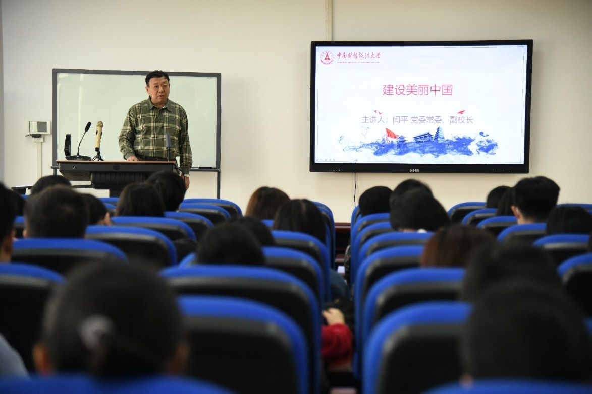 新闻网讯(通讯员 刘千惠 余利)10月26日下午,校党委常委、副校长闫平教授来到文澴楼809教室,为文澜学院经管专业的学子们讲述《建设美丽中国》专题思政课。