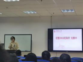 经管2002班班导刘惠中老师进行了自我介绍,在其讲话中也强调了邮件礼仪及大学生应明确自我目标等事。国际2001班班导黄伟哥老师则以诙谐幽默的语气与大家沟通交流,寓教于乐,让大家收获颇丰。最后导师见面会在欢声笑语中落下帷幕。
