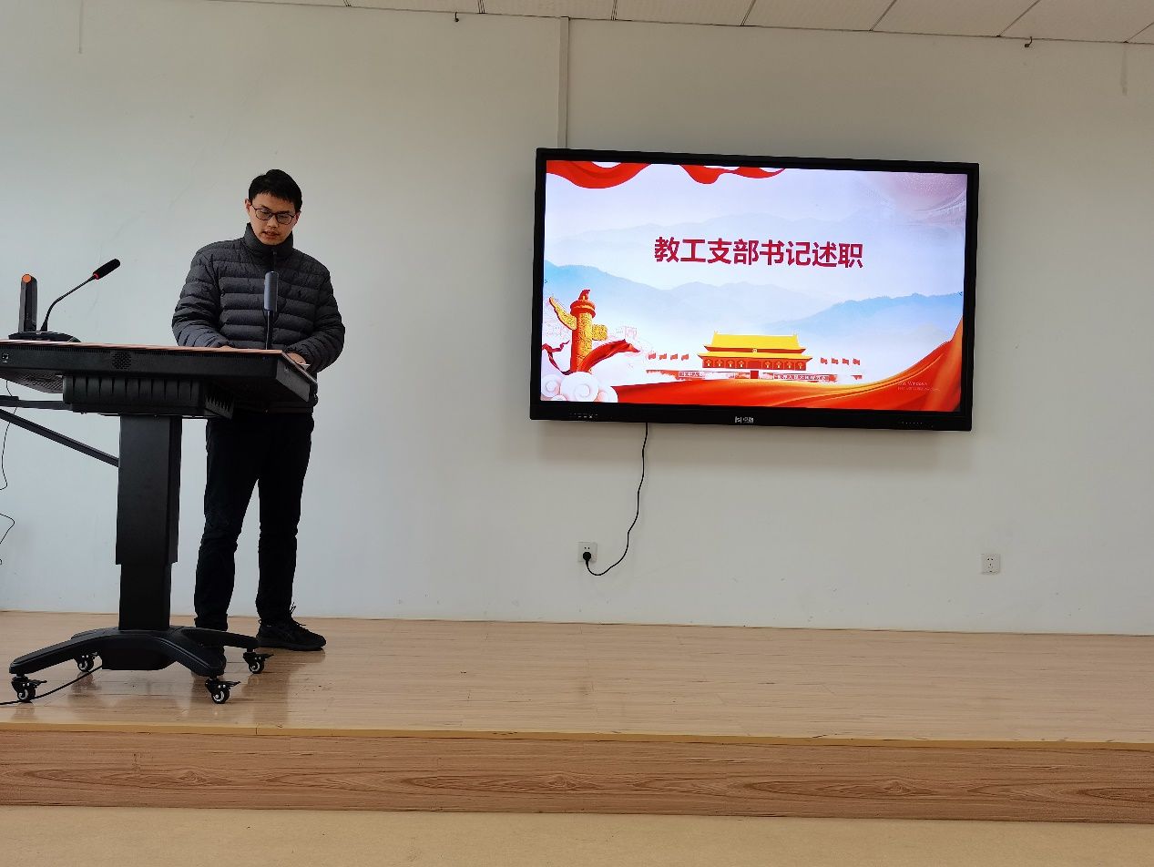 第一项议程是支部书记进行工作述职。教工党支部书记高楠首先进行述职。高楠同志指出2020年以来教工党支部坚定坚持党的全面领导,完善支部运行机制,切实落实党的路线方针政策和上级党组织的决定,在政治上、思想上、行动上同党中央保持高度一致。严格进行政治把关,做好支部工作,坚持把政治建设放在首位。严肃党内政治生活,夯实基层组织制度。同时高楠同志还指出2020年教工党支部存在主题党日活动较为单一,党费使用程序不够严格等问题,并对问题进行了分析。