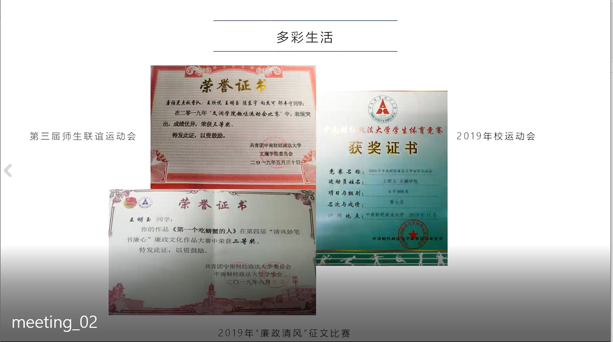 在答辩过程中,文澜学院的优秀学生身着正装端坐在镜头前,将自己最好的一面展现给评委老师。每位学生从思想道德、学习和工作等方面展开自我陈述。他们将自己实践经历和所获成就娓娓道来,体现了文澜学子奋勇搏击的精神面貌。在42名学生完成自我陈述后,本次线上答辩会圆满结束。