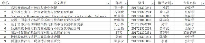 根据教务部《关于组织评选 2021 年校级优秀学士学位论文的通知》的要求,学院成立由分管教学副院长和具有副教授以上职称的专家组成院优秀学士学位论文评选小组,按照公平、公正、公开的原则,对优秀毕业论文进行了校内+校外专家匿名评选。现特将9篇校级优秀学士学位论文公布如下: