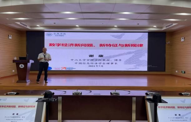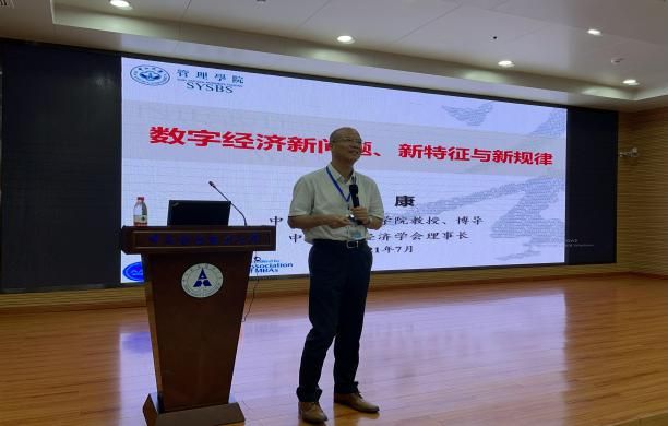 在主题报告环节,谢康教授、马述忠教授、陈斌开教授、蔡跃洲教授等来自数字经济领域的专家依次进行了主题分享。谢康教授是中山大学管理学院教授、博导、中国信息经济学会理事长、教育部电子商务专业教育指导委员会委员、教育部新世纪优秀人才支持计划获得者。谢康教授针对数字经济的新问题、新特征与新规律,从自身经历出发,结合国家领导人相关讲话、中央经济工作会议、国务院工作报告及文件三方面论述、观点和要点,提炼出数字经济的七个新问题和三大特征,提出数字经济的理论概念,通过剖析数字经济的新特征和新规律,阐述数字经济促进经济高质量发展的内在机理。
