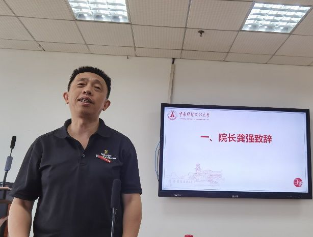 典礼伊始,文澜学院院长龚强教授致辞,表示对文澜学院21级新生最热烈的欢迎,期待学院新生力量展现耀眼光芒。接着,典礼第二项内容,由学院副院长高楠副教授讲话,他希望同学们积极主动规划好大学学习与生活,珍惜大学四年的宝贵时光。