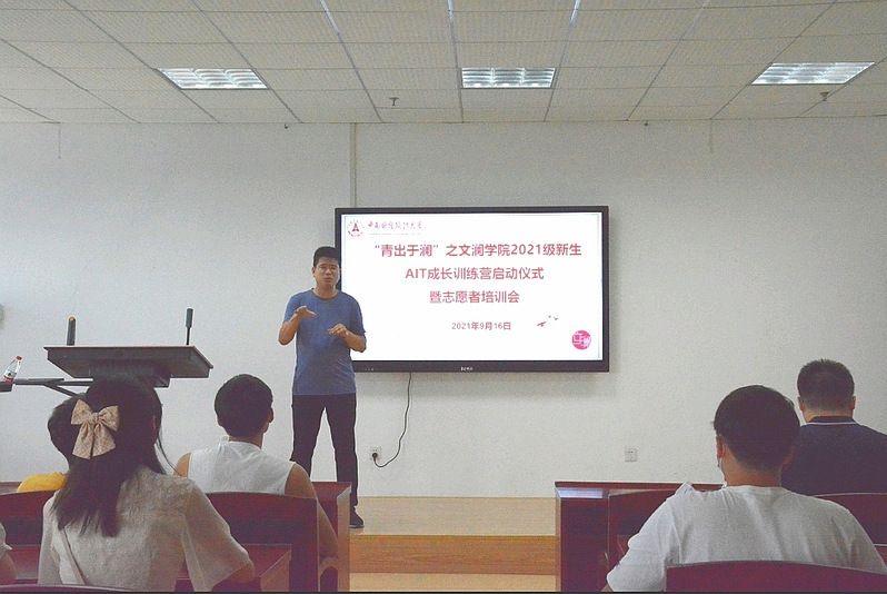 (通讯记者:杨容华 何学韬)2021年9月16日下午,“青出于澜”文澜学院2021级新生AIT成长训练营项目在文澴楼709正式启动。本次活动是学院党委“我为师生办实事”的重要内容,旨在帮助大一新生更好更快适应大学生活,培养新生积极心理品质,走好新生入学教育最先一公里。出席本次活动的师生有全国高校心理委员研究协作组理事、心理中心余金聪老师,米兰电竞·(中国区)哲学院社会工作教研室唐小晴老师,文澜学院学办主任兼心理健康教育工作站站长余利老师,21级新生辅导员黄冠老师以及15名志愿者。本次活动由余利老师主持。
