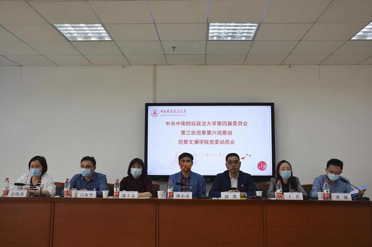 (通讯员/殷茵 刘千惠)根据校党委工作要求,11月3日下午2:30,学校第四届党委第三批巡察第六巡察组巡察文澜学院党委动员会在文澴楼709会议室顺利召开。校纪委副书记、党委巡察办公室主任赵凯、党委巡察办公室副主任潘丰文、党委巡察办公室秘书刘一民、校党委第六巡察组组长傅小勇、副组长王芹、吕保华,成员王瑄、张景瑜、覃文杰以及文澜学院领导班子、党委委员、纪委委员、党员代表、教师代表、党政管理干部代表参加本次动员会。会议由文澜学院院长龚强同志主持。