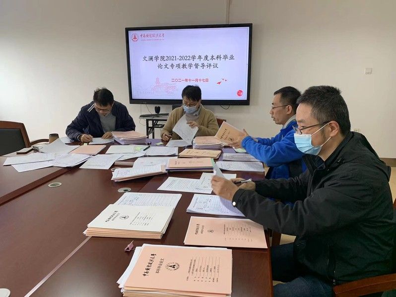(通讯员:孙思奇)为进一步严格教学环节管理,提升人才培养质量。文澜学院于2021 年 11 月 17日组织并完成本学年度的本科毕业论文的专项教学督导评议工作。本次检查对象为 2017 届本科生的全部毕业论文,院级督导组由文澜学院教研专家组成员组成。