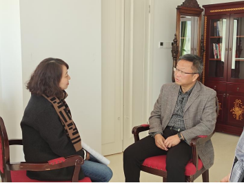康宁(左一)、程静杨(右一)与波兰驻成都大使馆工作人员(左二)访谈后合照