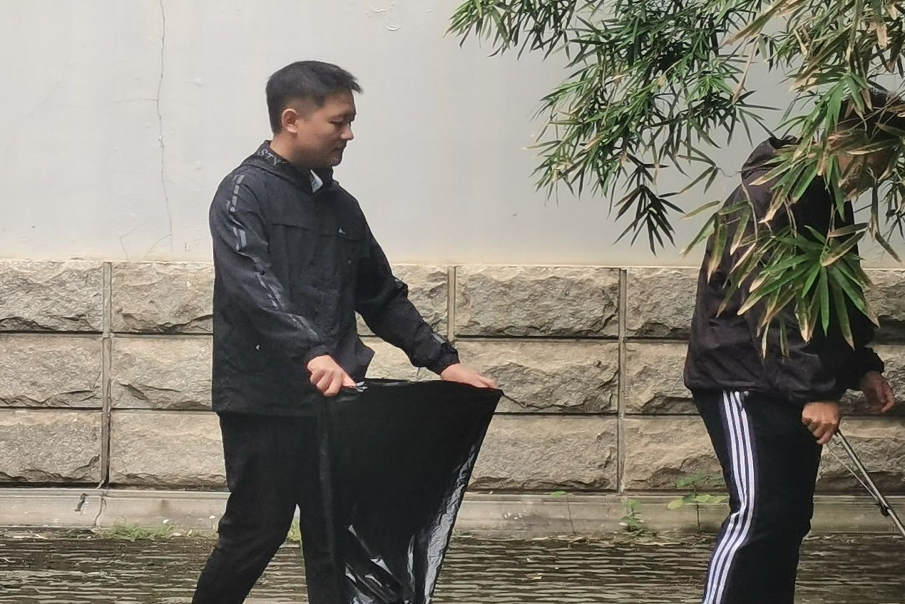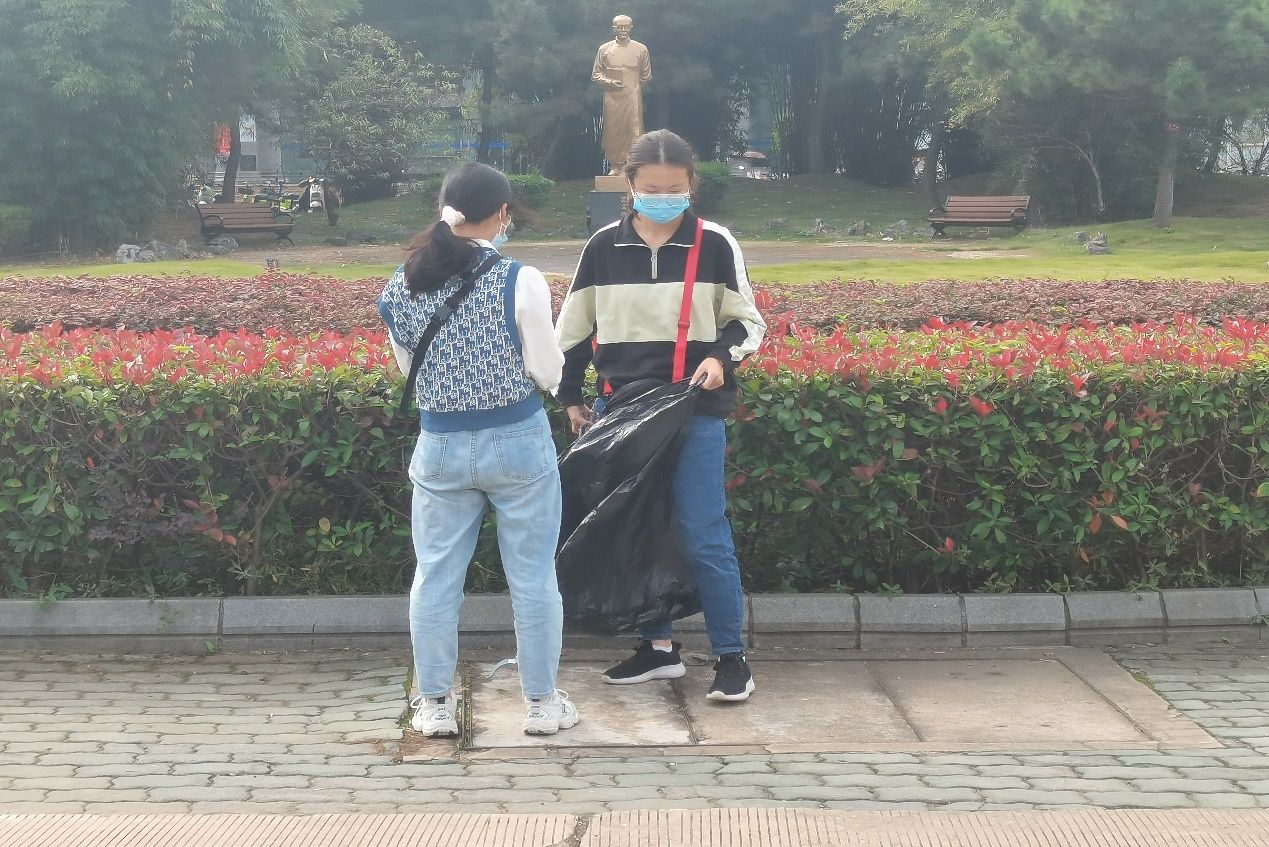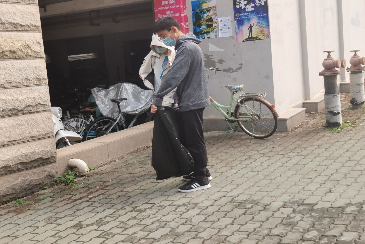 为确保无死角高效率清扫校园,四十名志愿者配合默契,分组分区进行清扫工作。男同学手提垃圾袋分装垃圾,女同学利用清扫工具捡拾垃圾。活动进行过程中,同学们不仅在自己负责的区域地毯式搜索捡拾垃圾,同时互相帮助,互相配合,高效高质量完成任务。
