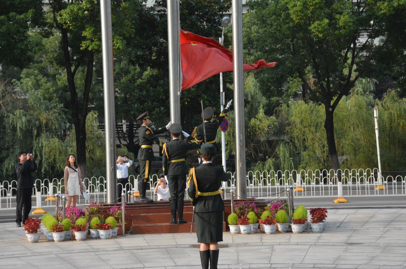 活动开始,国旗护卫队迈着铿锵有力、整齐划一的步伐,护送着鲜艳的五星红旗缓缓而来,国旗在嘹亮的国歌合唱声中迎着朝阳晨风冉冉升起。
