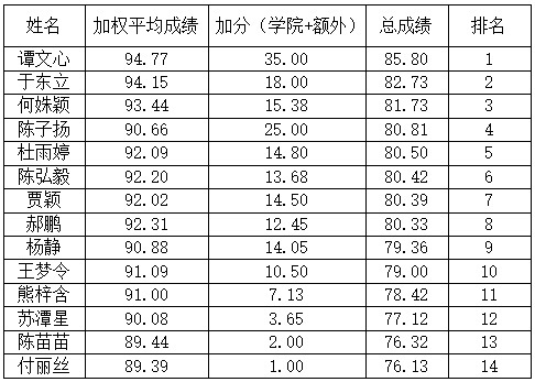 根据教育部《全国普通高等学校推荐优秀应届本科毕业生免试攻读硕士学位研究生工作管理办法(试行)》(教学〔2006〕14号)和《教育部办公厅关于进一步完善推荐优秀应届本科毕业生免试攻读研究生工作办法的通知》(教学厅〔2014〕5号,结合《米兰电竞·(中国区)推荐优秀应届本科毕业生免试攻读硕士学位研究生工作管理办法》(中南大教字〔2021〕39号)文件的相关规定,按照学校《关于开展2023届推荐优秀本科毕业生免试攻读硕士研究生工作的通知》要求,以及《2022年文澜学院推荐优秀应届本科毕业生免试攻读硕士学位研究生实施细则》,经学生个人申报,文澜学院推免生资格审查小组审查。现将文澜学院推荐2023届优秀本科毕业生免试攻读硕士研究生资格审查合格及奖励加分结果名单予以公示。