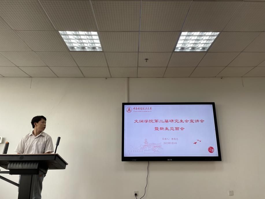(通讯员/周京)2022年9月8日下午4:30,文澜学院第二届研究生会招新宣讲暨新生见面会在文澴楼709会议室召开。文澜学院院长龚强教授及副院长帅杰教授出席会议,学院全体研究生参加本次会议。会议由学院研究生辅导员黄冠老师主持。