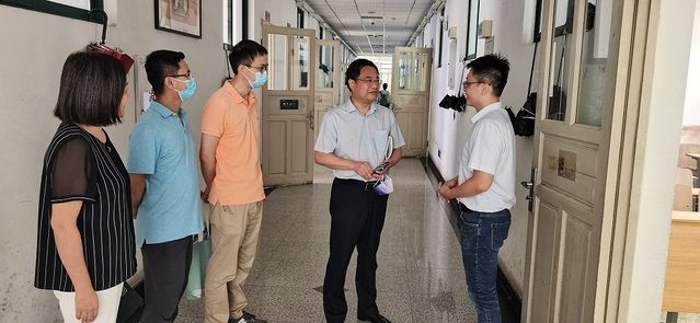 侯振发提前来到教室门口,与任课教师陈泰良亲切交流,深入了解教师教学情况、学生课堂秩序、学生学习状态等教风学风建设落实情况。