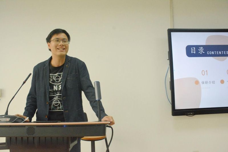 最后一位分享的是经管1901班的苏潭星同学,他从考研和保研的关系以及相关课程设置两大方面进行了介绍,比较了考研和保研两条路径的不同,让同学们能更清晰地了解这两个不同的升学选项,从而能更理性地做出选择。随后,强调了课程的设置都有其存在的意义,同学们应对各类课程都要产生重视,更好地从这些课程中汲取知识,充实自我,锻炼能力,最终在文澜学院成长为优秀的人才。