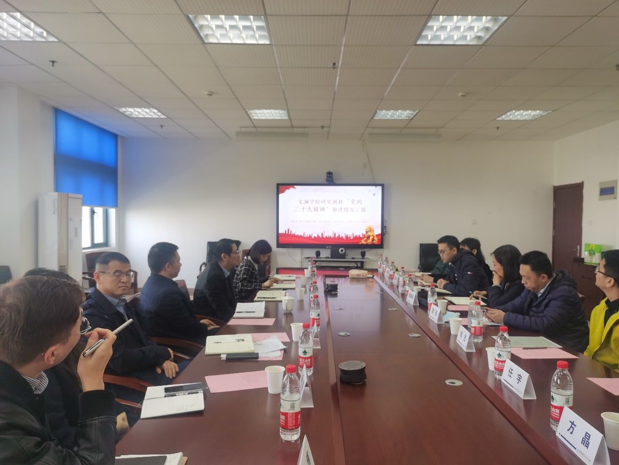 文澜学院高楠副院长、帅杰副院长分别介绍了学院研究阐释党的二十大精神推进情况和下一步工作计划、学院科研工作情况。高楠详细介绍了学院在党的二十大召开前、中、后所开展的系列教学、科研、育人活动,展现文澜师生积极学习研究党的二十大精神的热情风貌;帅杰展示了学院科研工作从日常科研工作、教师教学科研成果、学生科研成果等。