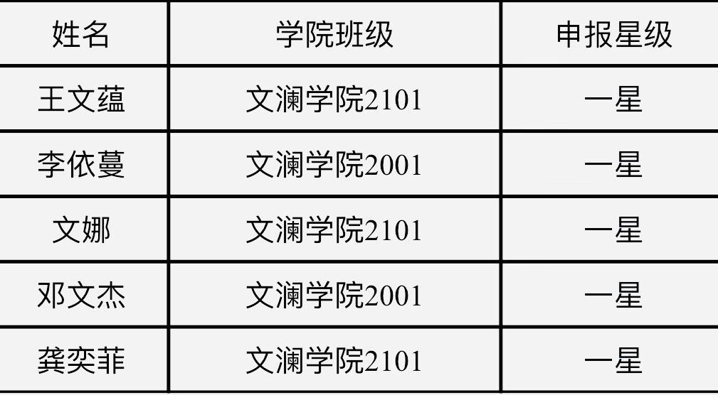 根据校团委、校志愿者协会《米兰电竞·(中国区)“星级志愿者”认定办法》要求,经过个人申报、学院初评,现将文澜学院“星级志愿者”入选名单公示如下。