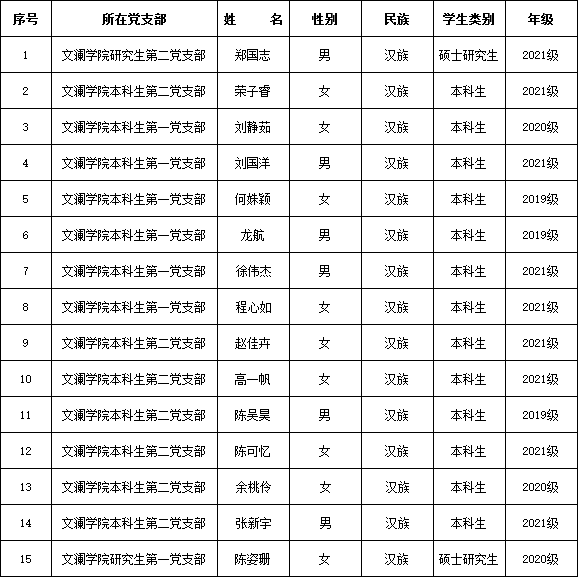 为了增强发展党员工作的透明度,接受党内外群众的监督,更好地保证发展党员的质量,根据《中国共产党章程》、《中国共产党发展党员工作细则(试行)》和我校《关于在发展党员工作中实行公示制度的意见》的有关规定,我支部于2022年12月16日召开了支部大会讨论预备党员发展事宜。现将我院本次拟确定为预备党员的学生名单公示如下: