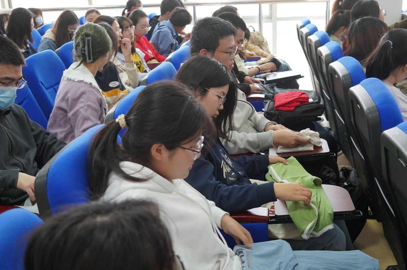 向汉华老师从整理的美学概念讲起,对宿舍收纳好物、物品收纳的基本原则、衣柜整理技巧等内容作了系统介绍,并结合我院宿舍实景照片进行细致的分析。除了理论讲解,向汉华老师还利用带来的收纳盒、纸袋、各类衣物等道具进行现场整理演示,引发学生们阵阵惊叹和掌声,现场互动效果良好。