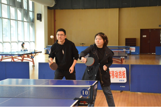 最终的角逐正式开始,比赛采用5局3胜11分制,赛制的拉长使比赛更加激烈。选手们全神贯注,动作行云流水,比分你追我赶,精彩的较量获得了观众此起彼伏的掌声和欢呼声。经过数轮鏖战,冠、亚、季军正式诞生,高楠老师、谭文心同学组成的队伍获得冠军,张天洋老师、李湘蓉同学组成的队伍获得亚军,高嘉宏、黄晓静同学组成的队伍获得季军。