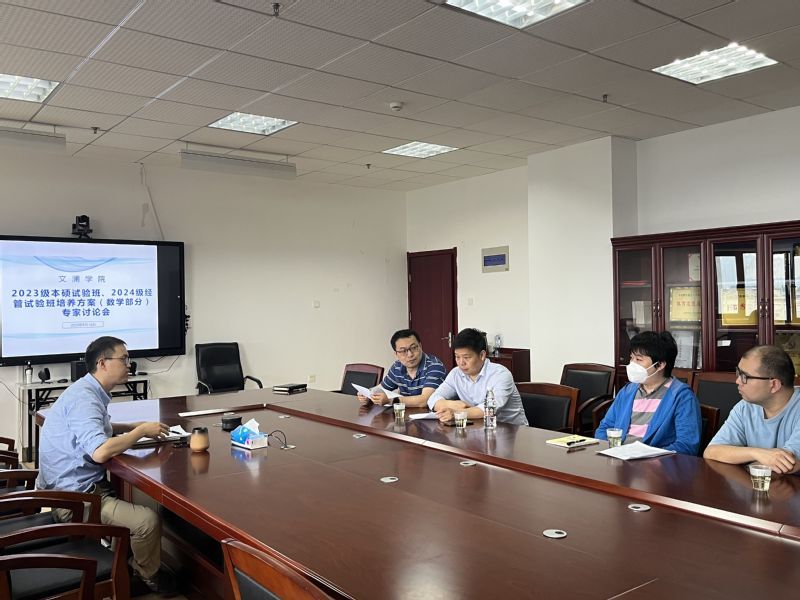 (通讯员/刘一鸣)5月16日下午,文澜学院召开经济管理试验班和本硕实验班培养方案(数学部分)的专家论证会。会议邀请了华中科技大学数学与统计学院李楚进副教授,以及学院承担数学类课程任务的王新宇副教授、杨子超副教授、周炜伦副教授。论证会由教学副院长高楠主持。