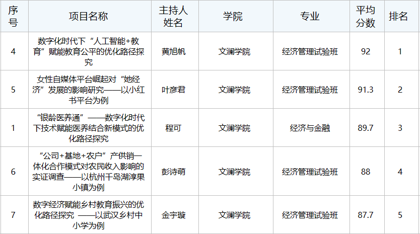 文澜学院第三十六届“博文杯”大学生百项实证创新基金项目申报工作已经结束,经学生自主申报、专家评审、学院终审,现将拟推荐立项项目评选结果公布如下:
