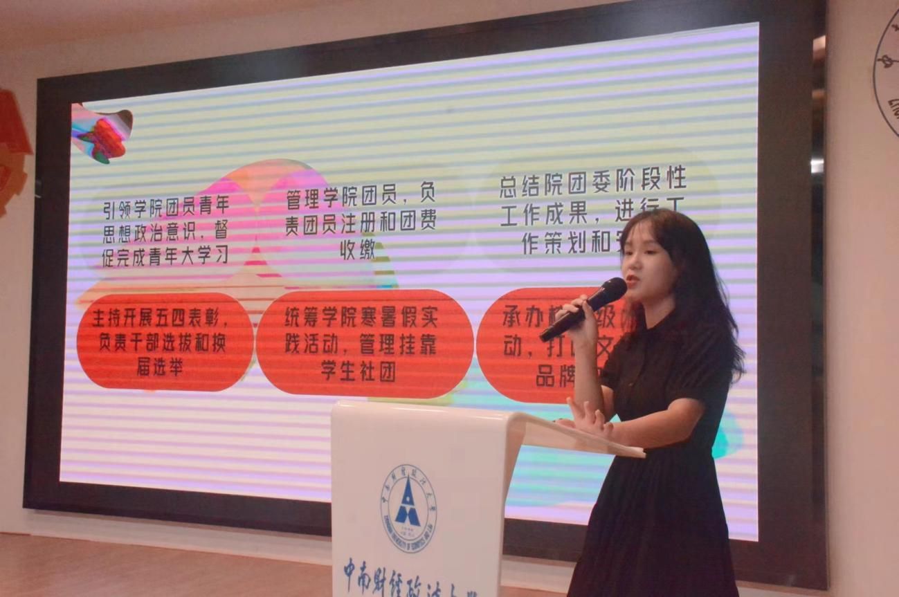 随后,院第十一届学生会主席团成员程心如同学介绍了学生会的四个部门,表达了学生会对新生们加入文澜团学志、开启新征程的欢迎与期盼。学生会秘书处熊雨田同学、学术部陈思奕同学、文体部李雨桐同学、 生活权益部安栩馨同学依次介绍部门的主要职能以及工作意义等内容。