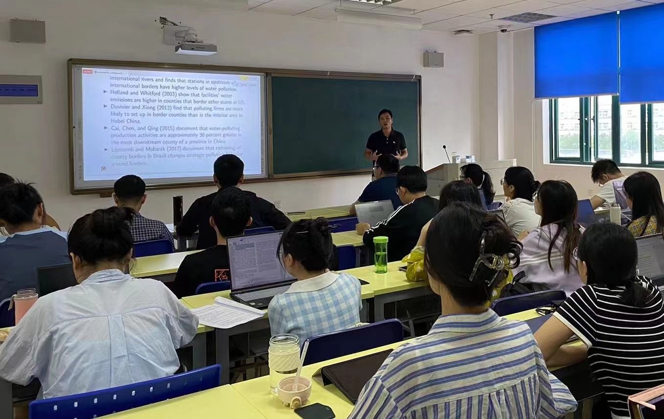 2023年9月22日下午,南京审计大学郭焕修副教授来我院开展学术讲座,本次讲座主题为:"Does Vertical Environmental Governance Reduce Water Pollution at Borders? Evidence From a Pilot Experiment in Shaanxi, China",文澜学院众多师生听取了本次讲座。