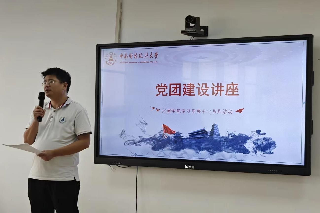(通讯员/李彬 刘千惠)为进一步推动深入开展学习贯彻习近平新时代中国特色社会主义思想主题教育走深走实,提升文澜学子的政治理论素养,切实做好新生入学教育工作,文澜学院学习发展中心于10月19日下午14时在文澴楼809教室举办了2023级本科新生党团建设讲座。本次讲座邀请文澜学院学生工作办公室主任余利老师与分团委书记刘千惠老师进行党团知识普及,文澜学院全体2023级新生参加本次讲座。讲座由学术部副部长蒋秋晓主持。