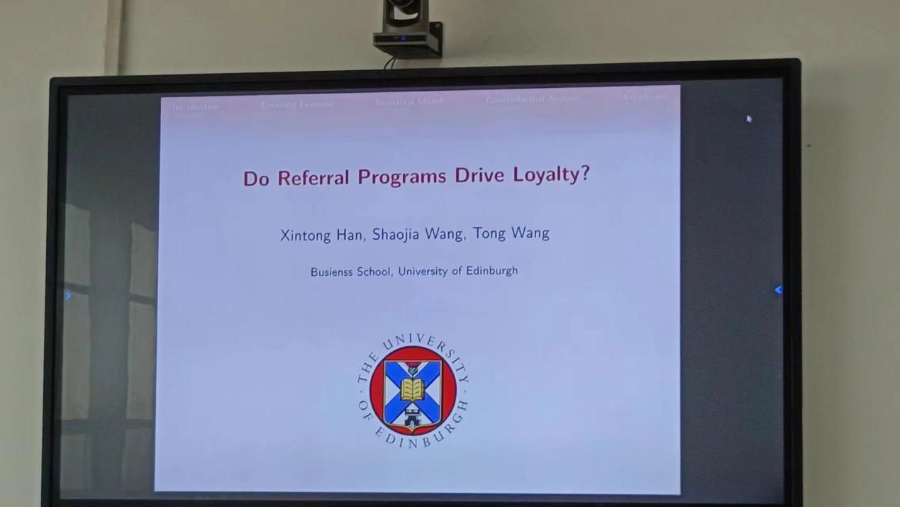 在休息了十分钟后,汪通教授分享了第二篇论文“Do Referral Programs Drive Loyalty?”汪教授首先介绍了这篇论文数据的来源,以及“知识星球”这一特殊的背景,随后阐述了如何用reduced form的方式探索影响消费者续订的因素,并且提出了“Network Approach”和“Signaling Effect”两个不同的影响路径,最后分享了自己对这两个路径的模拟结果和论文的最终结论。