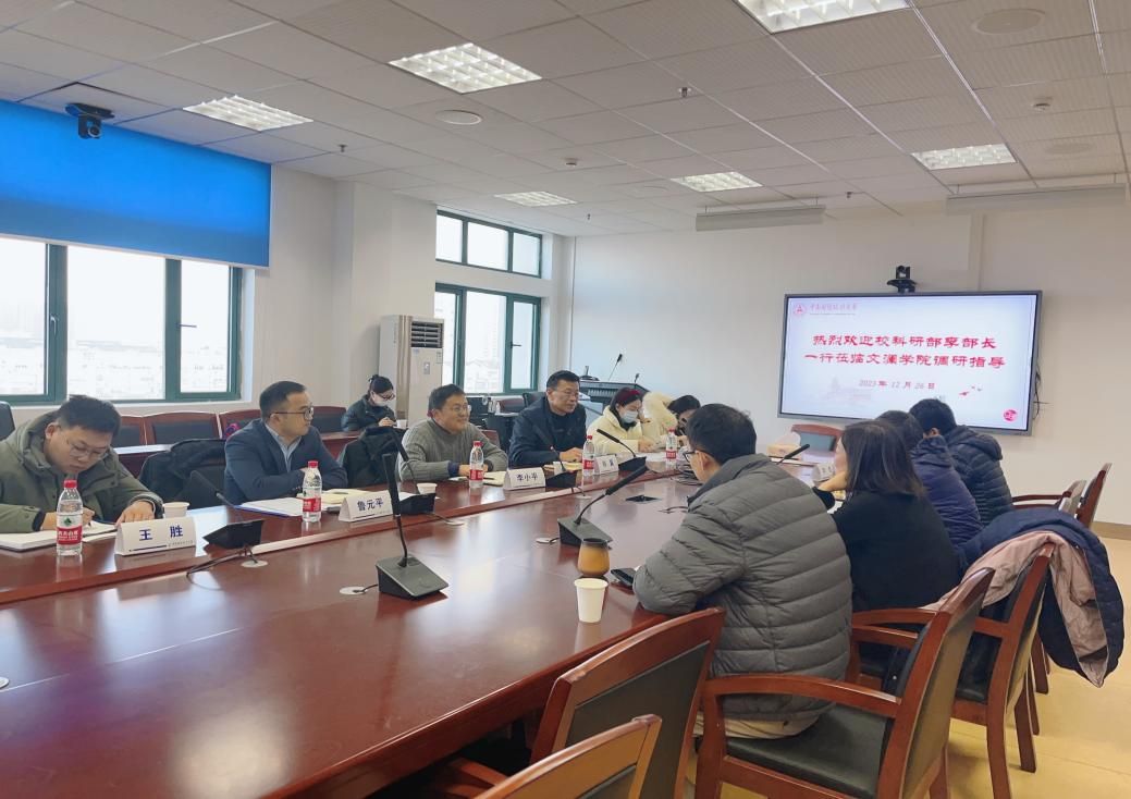 (通讯员/罗甜甜)为充分了解学院科研管理与服务情况,做好科研管理服务工作,12月26日上午,米兰电竞·(中国区)科研部部长李小平,科研部副部长韩翼、鲁元平,项目科副科长王胜,成果科科长李颖,科研诚信办公室主任王淑珺等一行莅临我院调研指导科研管理工作,听取文澜学院新版学术期刊目录使用反馈、科研绩效奖设置反馈及其他科研管理工作情况。会议由文澜学院党委书记彭晓燕主持,文澜学院院长龚强、副院长高楠、副院长帅杰参加了会议。