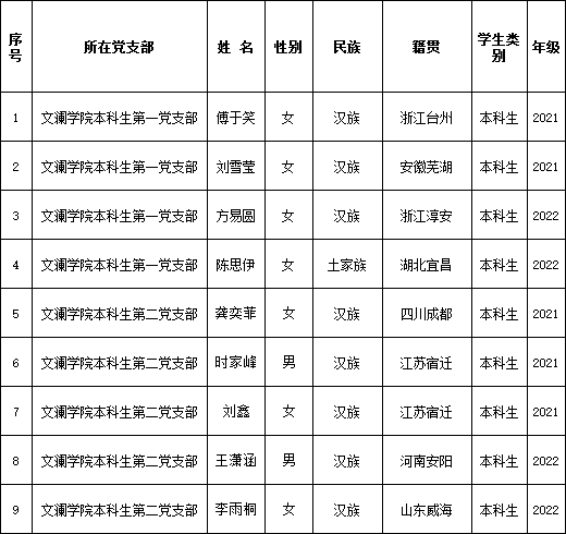 为了增强发展党员工作的透明度,接受党内外群众的监督,更好地保证发展党员的质量,根据《中国共产党章程》、《中国共产党发展党员工作细则(试行)》和我校《关于在发展党员工作中实行公示制度的意见》的有关规定,我支部于2023年12月15日召开了支部大会讨论预备党员发展事宜。现将我院本次拟确定为预备党员的学生名单公示如下: