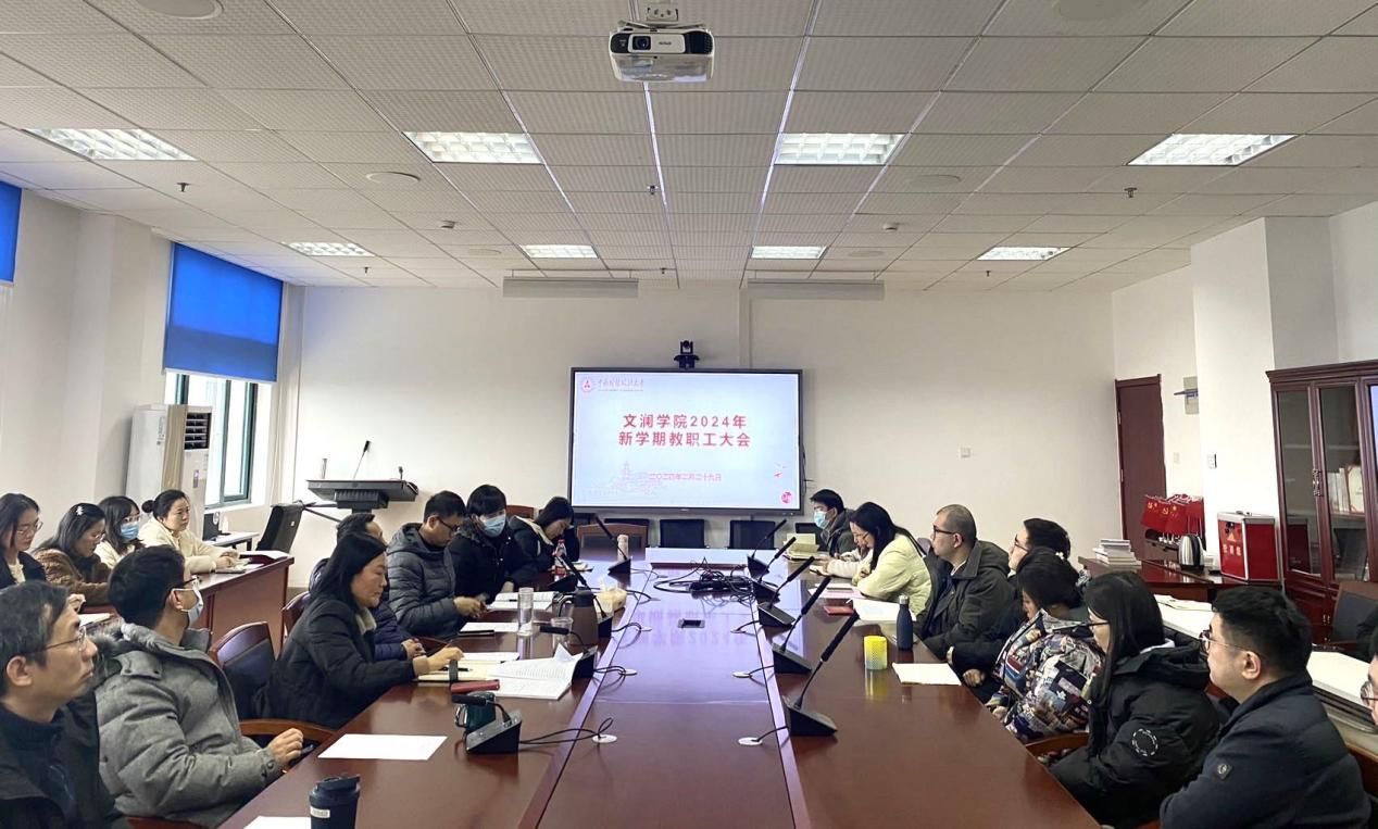 (通讯员:戴士崴)新学期伊始,春风和煦,万象更新。2月29日,文澜学院在文澴楼711会议室隆重举行“新气象、新征程”2023-2024学年春季新学期教职工大会,大会由文澜学院党委书记彭晓燕同志主持,院长龚强,副院长高楠、帅杰,以及学院全体教职工参加本次大会。